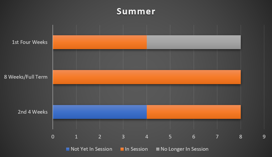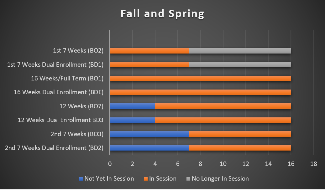 BRCC has several different parts-of-term within the same semester as follows: